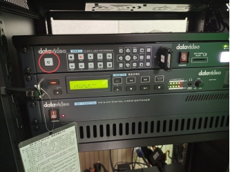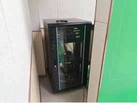 3.在绿幕后机柜,按一下“电源开启键”,可一键打开录制系统及灯光设备。