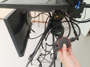 3. 如果在讲课过程中遇到问题或想暂停录制,用脚快速但有力地踩一下地上的录制开关,录制过程暂停,反监屏上面的红灯熄灭;至少间隔30秒后,用脚再次快速但有力地踩一下录制开关,反监屏上面的红灯亮起,可继续录制,以此类推,直到满意为止。