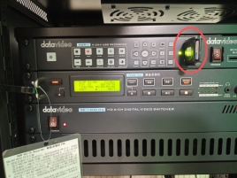 4.在绿幕后机柜,按一下左上角“电源键”。